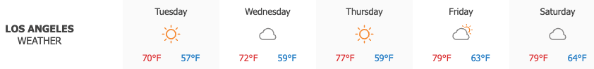 Sunny skies were seen across Los Angeles on Tuesday with moderate temperatures reaching a high of 70°. Clouds are expected to return on Wednesday, bringing slightly warmer weather along with a high of 72° forecast.