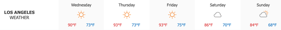 Los Angeles saw sunny skies on Wednesday, with highs reaching 90°. Sunny conditions are expected on Thursday, when temperatures will climb to around 93°.