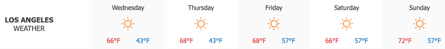 Sunshine was seen across Los Angeles on Wednesday with moderate temperatures topping out at a high of 66°. Thursday, more sun is expected with slightly warmer weather forecast, with a high of 68°.