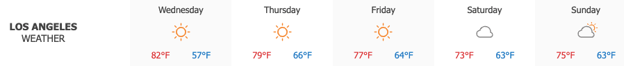 Warm weather and sunny skies were seen across Los Angeles on Wednesday, with temperatures topping out at 81°. More sunshine and warm conditions are expected on Thursday, with highs expected to reach a slightly cooler 79°.