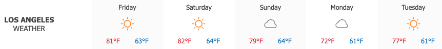 Sunny skies returned to Los Angeles on Friday, bringing warm weather that peaked at a high of 81°. Saturday, more sun is expected with even warmer conditions expected to reach a high of 82°.