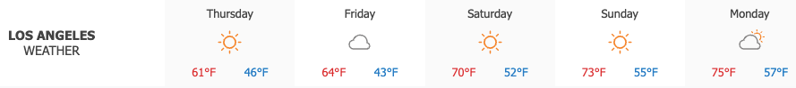 Sunny skies and windy conditions graced Los Angeles on Thursday with temperatures reaching a high of 61°. Clouds are expected on Friday, with slightly warmer conditions expected to reach a high of 64°.