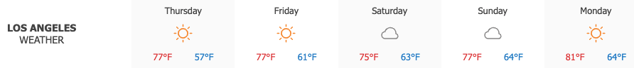 Sunny skies and warm weather graced Los Angeles on Thursday with highs reaching 77°. More warm weather and sunshine are expected on Friday with a similar high of 77° forecast.