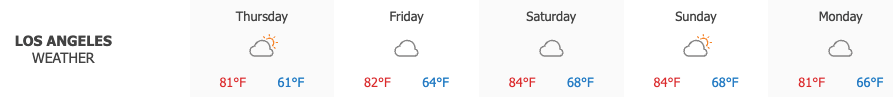 Los Angeles saw partly cloudy skies on Thursday, with highs reaching 81°. Cloudy conditions are expected on Friday, when temperatures will top out at 82°.
