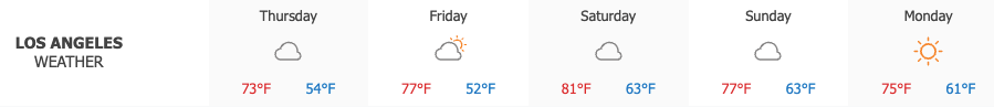 Los Angeles saw cloudy skies on Thursday, with highs reaching 73°. Partly cloudy conditions are expected on Friday, when temperatures will climb to around 77°.