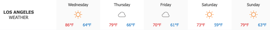 Los Angeles saw sunny, warm conditions on Wednesday, with highs reaching 86°. Cloud cover moves in on Thursday, when temperatures are expected to top out at 79°.