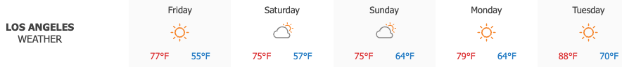 Sunny skies were seen across Los Angeles on Friday with temperatures topping out at a high of 79°. Saturday, a mixture of sun and clouds is expected with highs of 75° forecast.