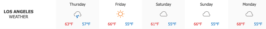 Clouds and scattered showers were seen across Los Angeles on Thursday, with highs reaching 63°. Sunshine is expected to return on Friday, with temperatures expected to warm slightly and a high of 66° forecast.